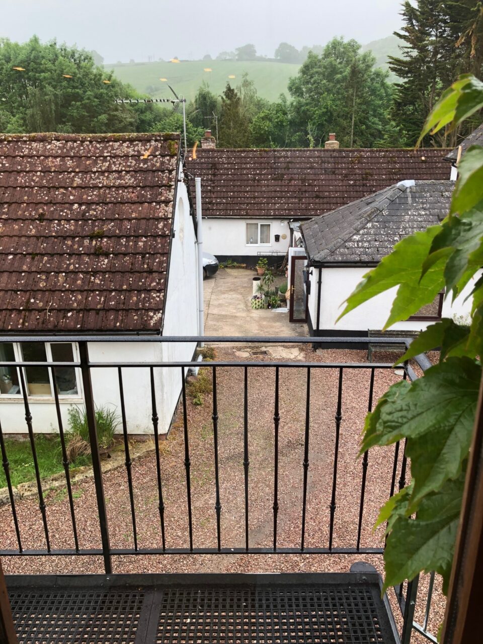 he flat is accessed by an outside staircase leading up to a balcony entrance that can accommodate a small table and chairs. The property benefits from beautiful rural views from every window.
