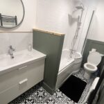 The bathroom and kitchen are very modern and fairly new.