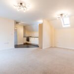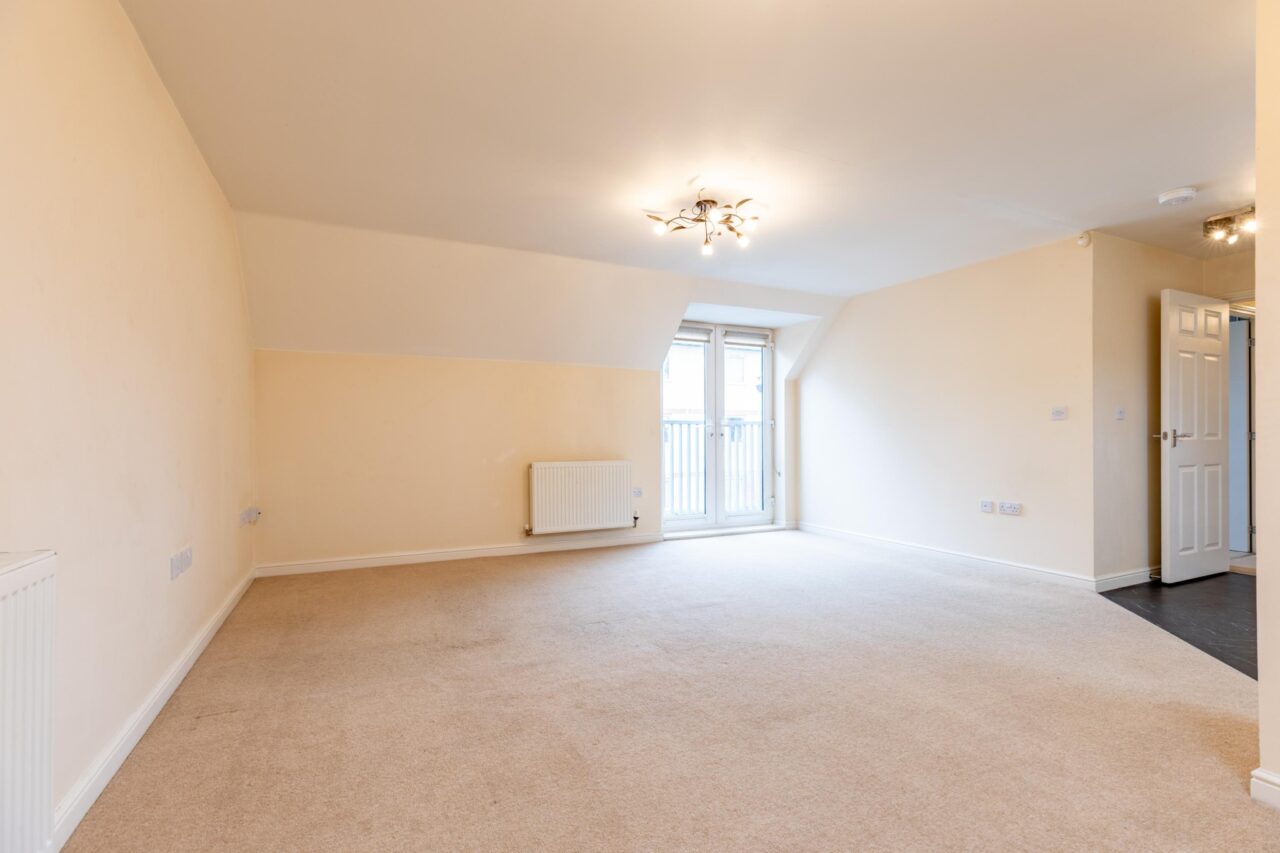 The property is accessed via a private entrance leading to a first-floor landing, where all accommodation is thoughtfully arranged on one level. The standout feature is the spacious open-plan living and dining area, filled with natural light from dual aspects and enhanced by a Juliette balcony, creating a bright and airy environment.