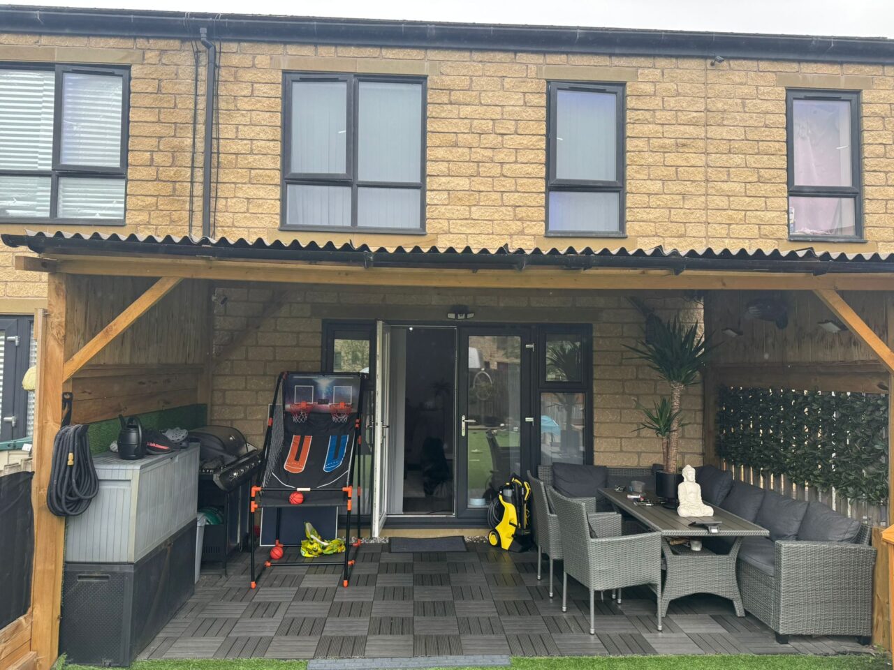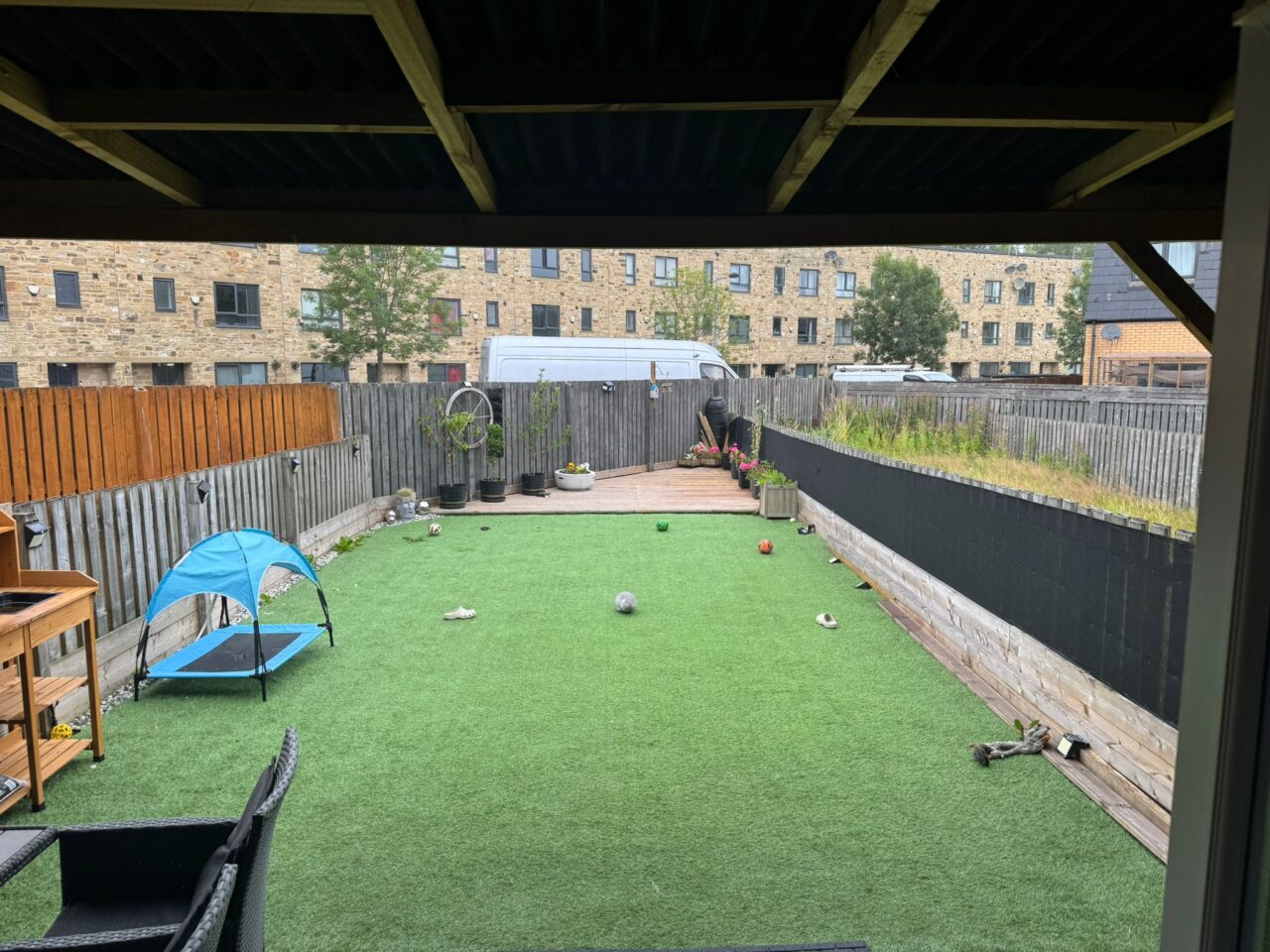 The garden is minimal maintenance with a patio at the back.