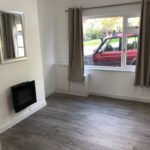 The property has been fully refurbished in a contemporary style and has grey vinyl flooring throughout the ground floor, with white decoration. Downstairs is a large lounge with panoramic window and a large storage cupboard off. A door off the lounge leads to the kitchen which has grey gloss base and wall units, integrated oven hob and extractor fan and a breakfast bar. There is also a washer and tall fridge freezer. The rear porch leads to the bathroom which has a full bath and overhead shower, sink and wc in white. The stairs lead up to 2 double bedrooms which have new fitted carpet.