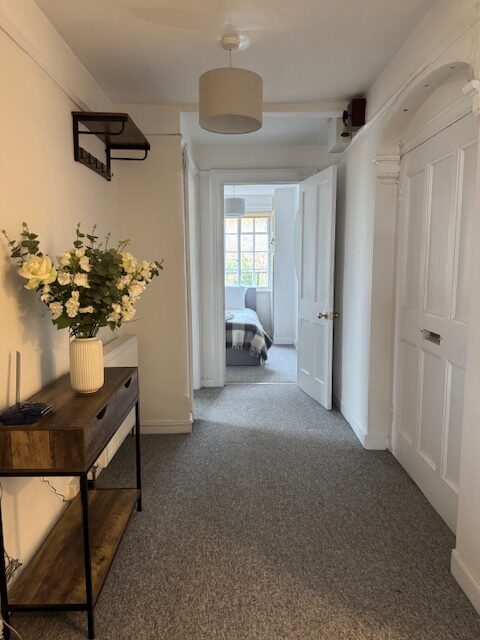 • On the second (top) floor, accessed via two short flights of stairs in the communal hallway.