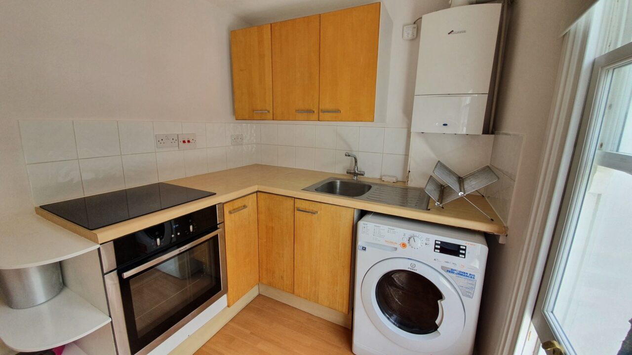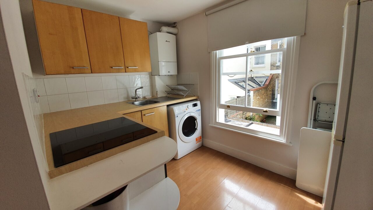 A neat three-piece bathroom suite as well as the separate kitchen make this a beautiful apartment on this leafy street.