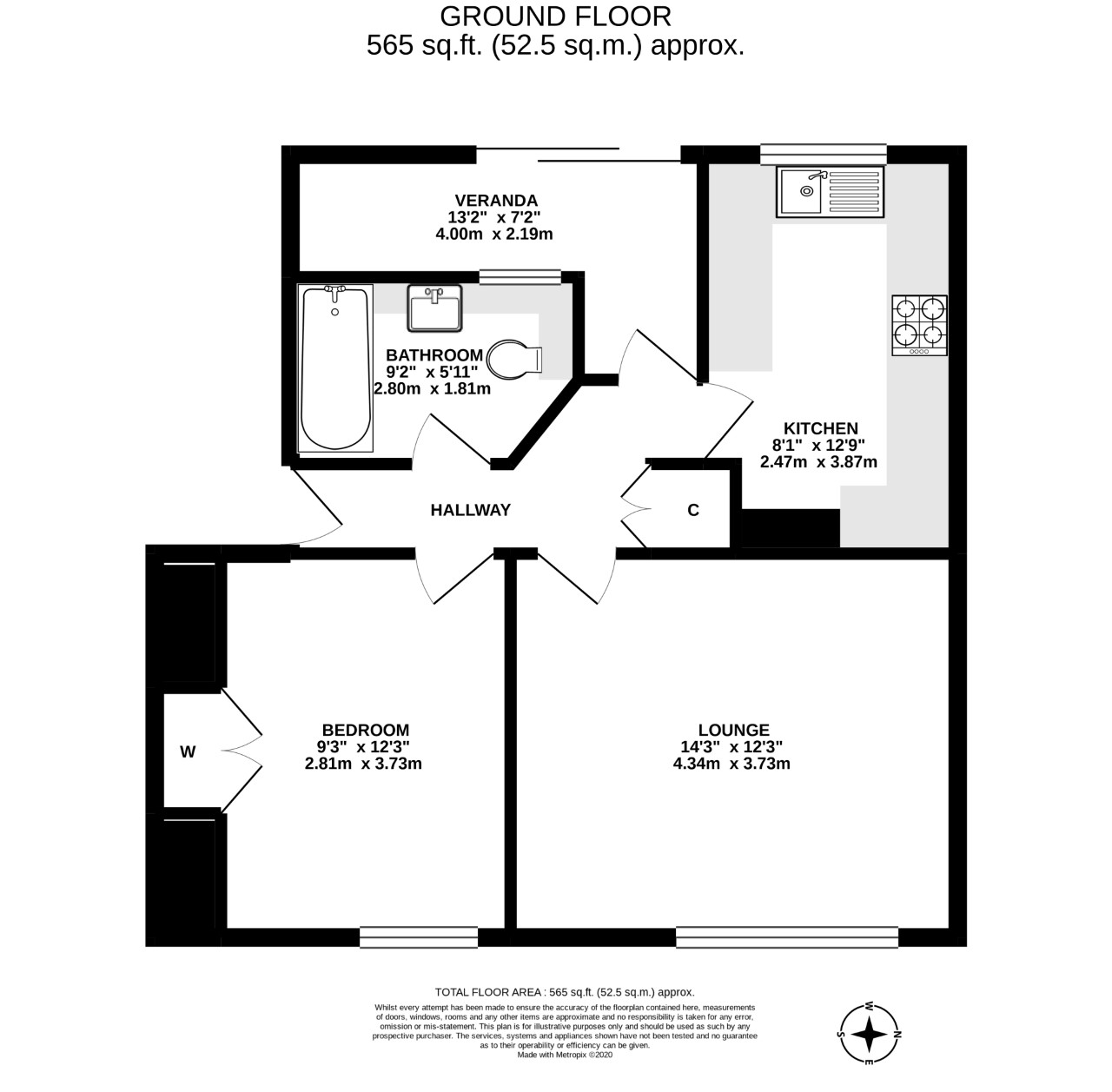 The corridor, bathroom and kitchen have laminate flooring while the bedroom and living room areas are carpeted for comfort.