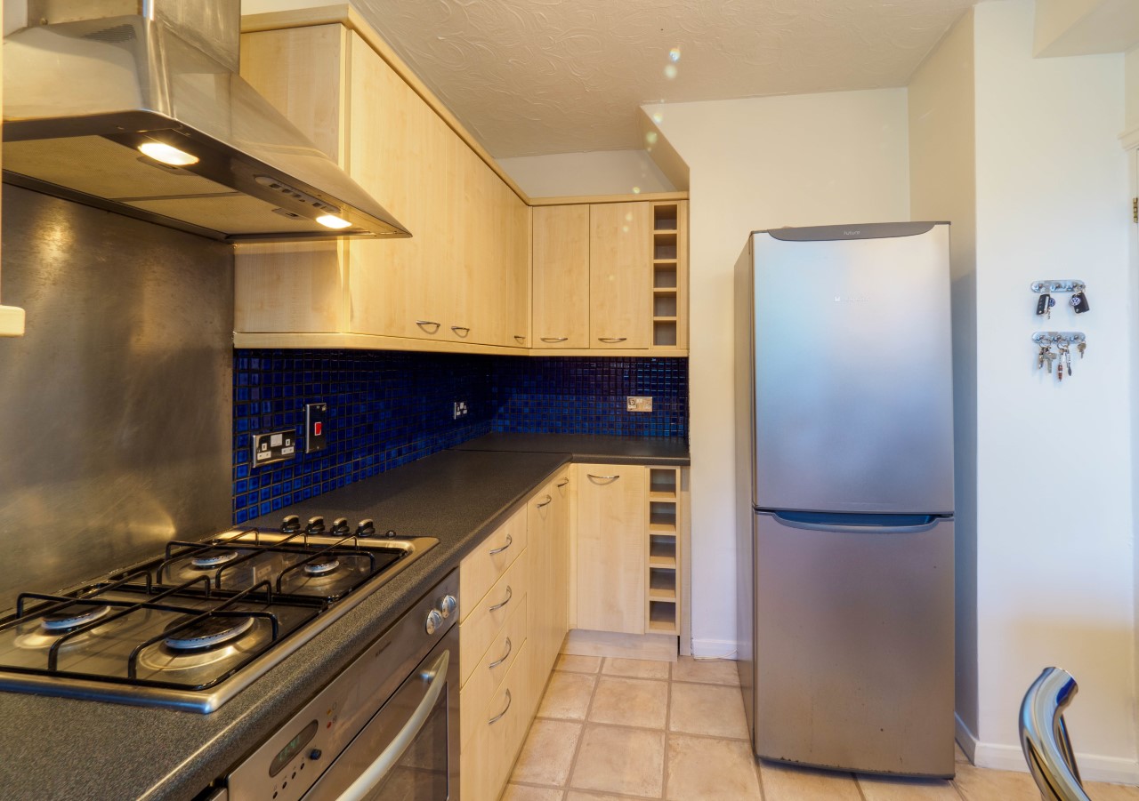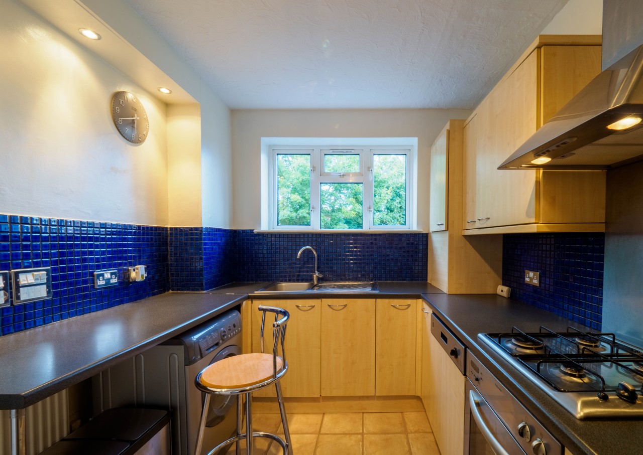 The flat has a fully fitted and modern kitchen with breakfast bar.