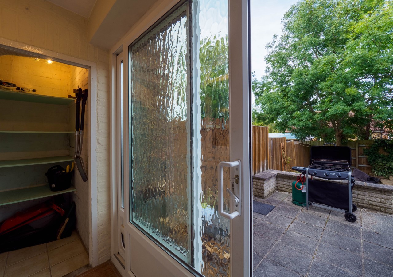 The property benefits from additional storage space with a hall cupboard and separate “boot room”, leading to a large private garden.