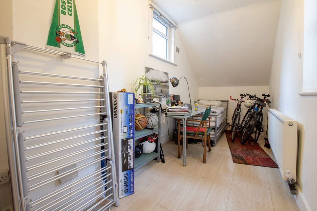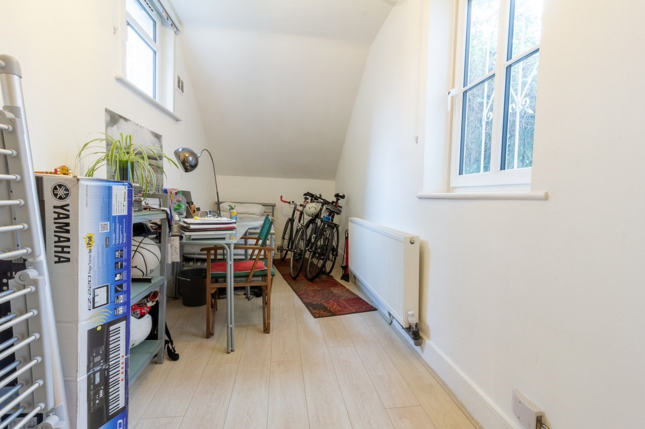 Private entrance, one large double bedroom with walk-in wardrobe, second good size bedroom that would work well as a guest room, child’s bedroom or office (it has previously been used as all three).
