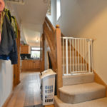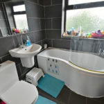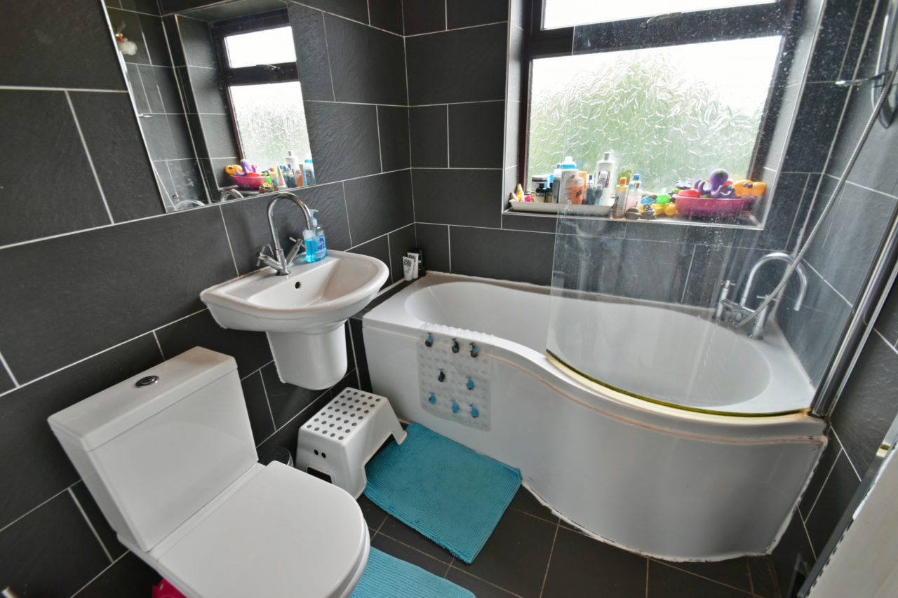 Upstairs features two double bedrooms and a single. The contemporary bathroom boasts a three-piece white bathroom suite with P-shaped bath, over bath shower with mixer taps.
