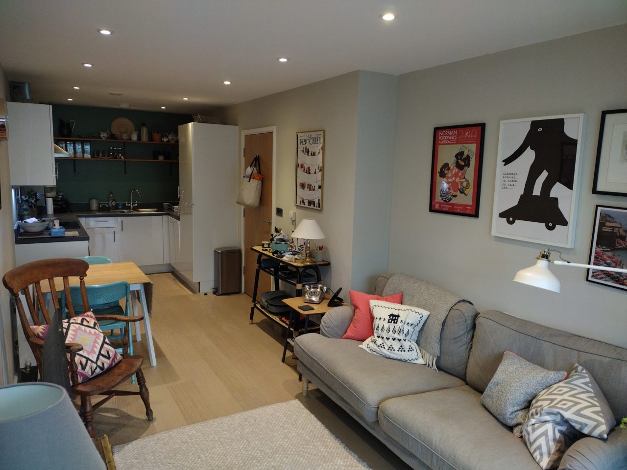 A second floor flat with well proportioned open plan living/kitchen/dining space. All white goods provided (full size dishwasher, washer/dryer, fridge freezer). South facing balcony overlooks an enclosed courtyard. Spacious master bedroom with fitted wardrobe. Modern bathroom with a bath and shower. Close (but not too close!) to the bars, cafés and restaurants of Clapham High St, Clapham Old Town and Brixton.