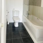 The bathroom is fitted with a contemporary white suite which includes a low level flush WC, wash-hand basin with chrome mixer tap and panelled bath with chrome mixer tap and showerhead attachment with rainfall style showerhead. There is a tiled floor, extractor fan and radiator.