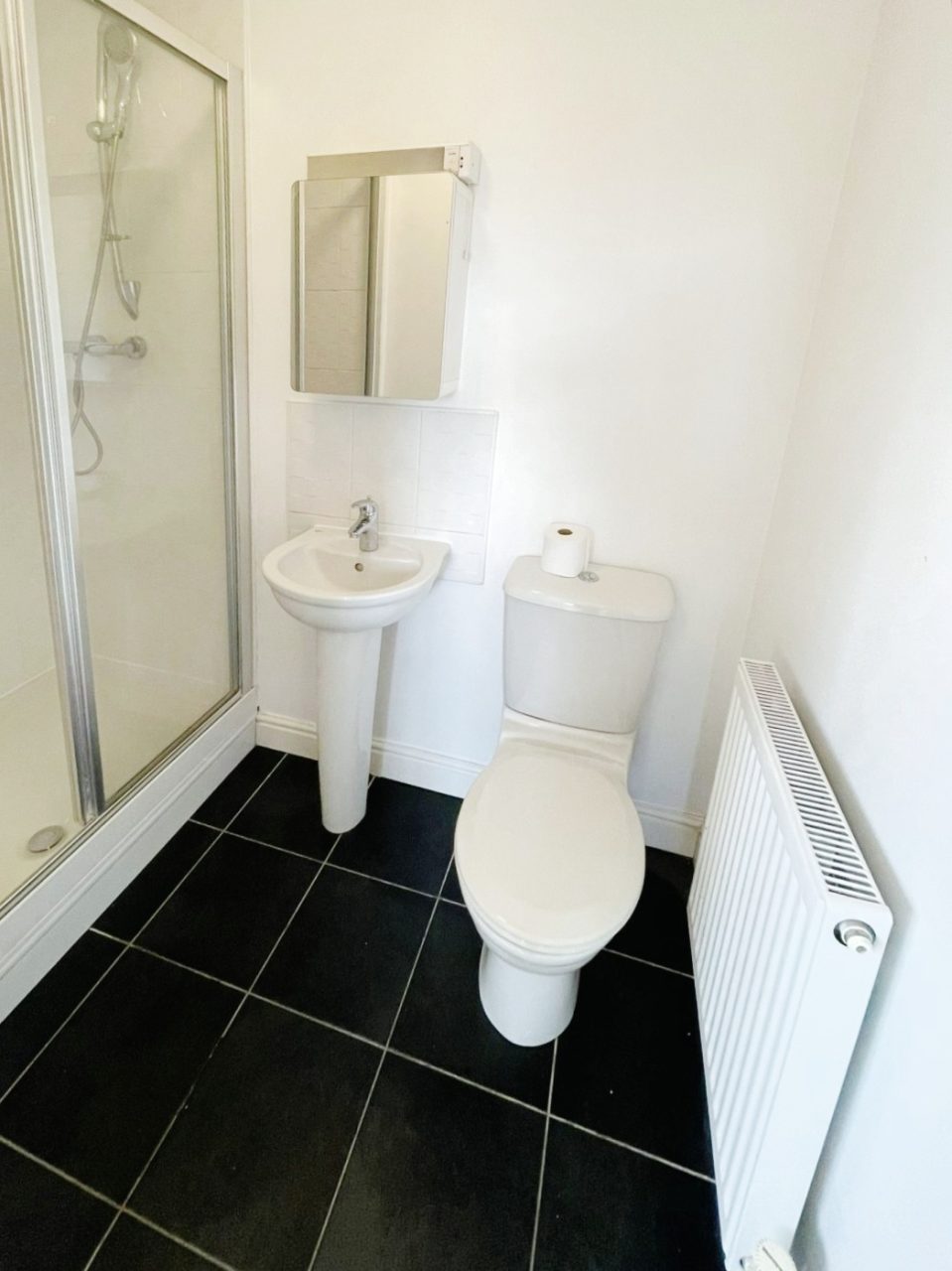 The second en-suite is fitted with a white suite which includes a low level flush WC, pedestal wash-hand basin with chrome mixer tap and a shower enclosure. There is a tiled floor, radiator and extractor fan.