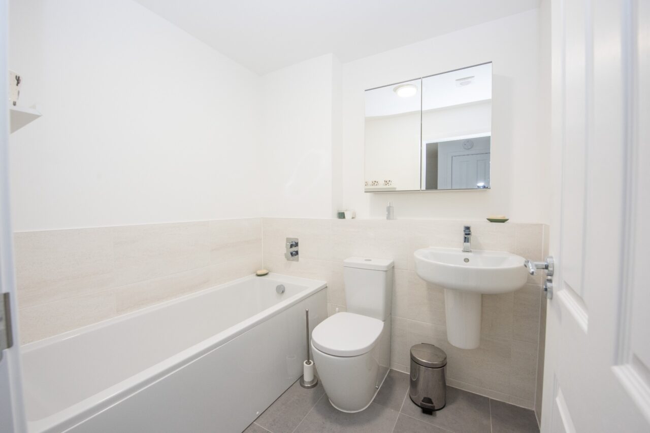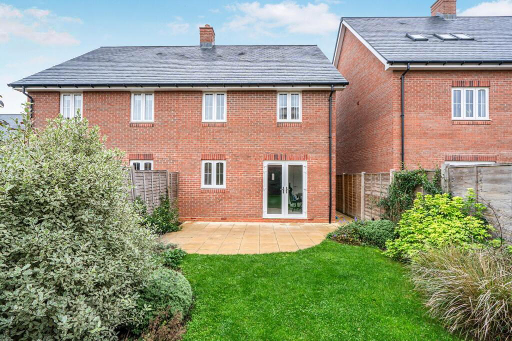 Immaculate 3 bedroom semi detached house. Two of the bedrooms include built in cupboards and there is an en-suite shower room as well as a family bathroom. The modern eat in kitchen has integral appliances including a dishwasher, fridge/freezer and washing machine. Double French doors lead from the kitchen onto a landscaped west facing garden with a large patio and a shed. There are two dedicated parking spaces at the front of the property and visitors parking spaces within the complex.