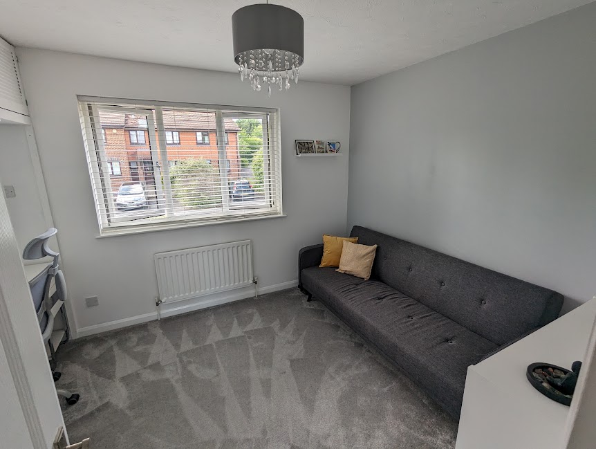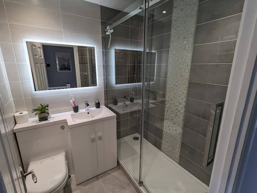 This home boasts two large double Bedrooms on the first floor; the main bedroom is generous in size and benefits from a large fitted modern wardrobe, which are well thought through with designated sections for shoes, trousers and long garments as well as drawers and fitted lighting. The second bedroom has a built-in cupboard with ample storage and space for a desk or similar to appear ‘built in’. Also on the first floor is the Bathroom which was fitted in 2019; featuring sleek grey tiles and flooring the bathroom has a large digital rainfall shower as well as a handheld shower. The Bathroom mirror provides excellent lighting as well as charging for your toothbrush or razor. The clean white and modern bathroom is easy to maintain and provides a spacious area to get ready in. The upstairs of this house has a cushioned grey carpet, laid in 2020.