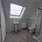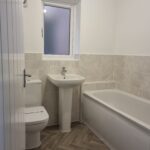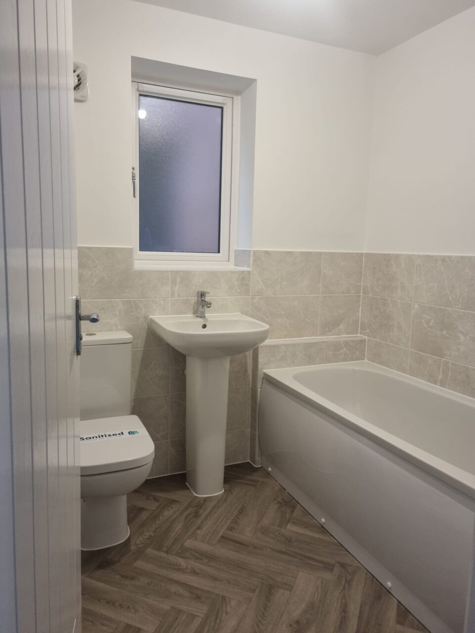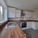 The kitchen comes fully equipped with a freestanding dishwasher, washer/dryer, oven, fridge-freezer, and gas hob — all brand new and ready to use.
