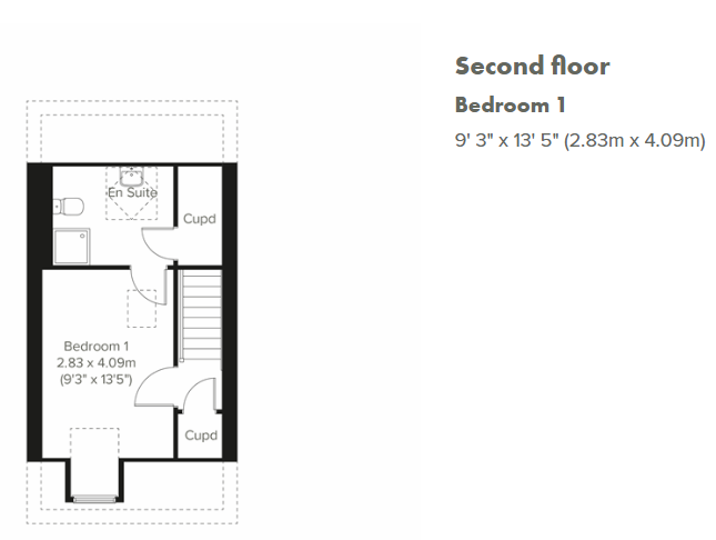 The top floor hosts a generous master bedroom with an ensuite shower room and two built-in storage cupboards.
