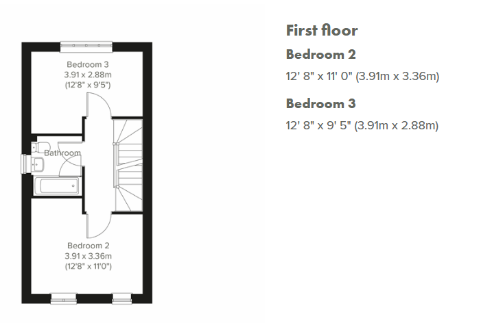 On the first floor, there are two well-proportioned bedrooms and a family bathroom.