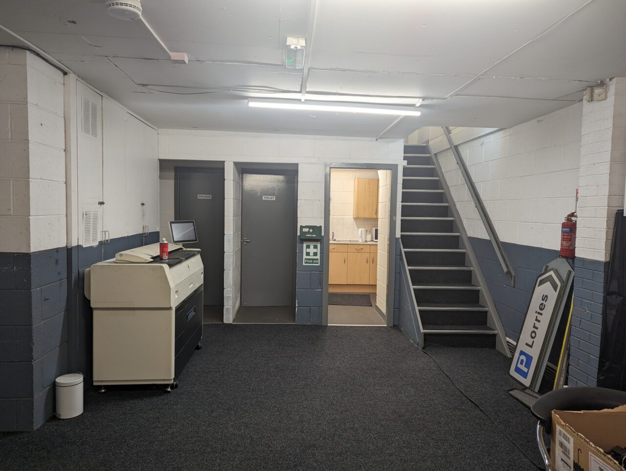 The unit comprises 200 sq m (2153 sq ft) of commercial accommodation suitable for a variety of uses. 100sq m ground floor office space and 100 sq m first floor office /stores. 2 toilets and a kitchenette. There is one roller shutter vehicle door to the workshop and personnel entrance door leading to first floor offices. The property is heated by way of a gas combi boiler.