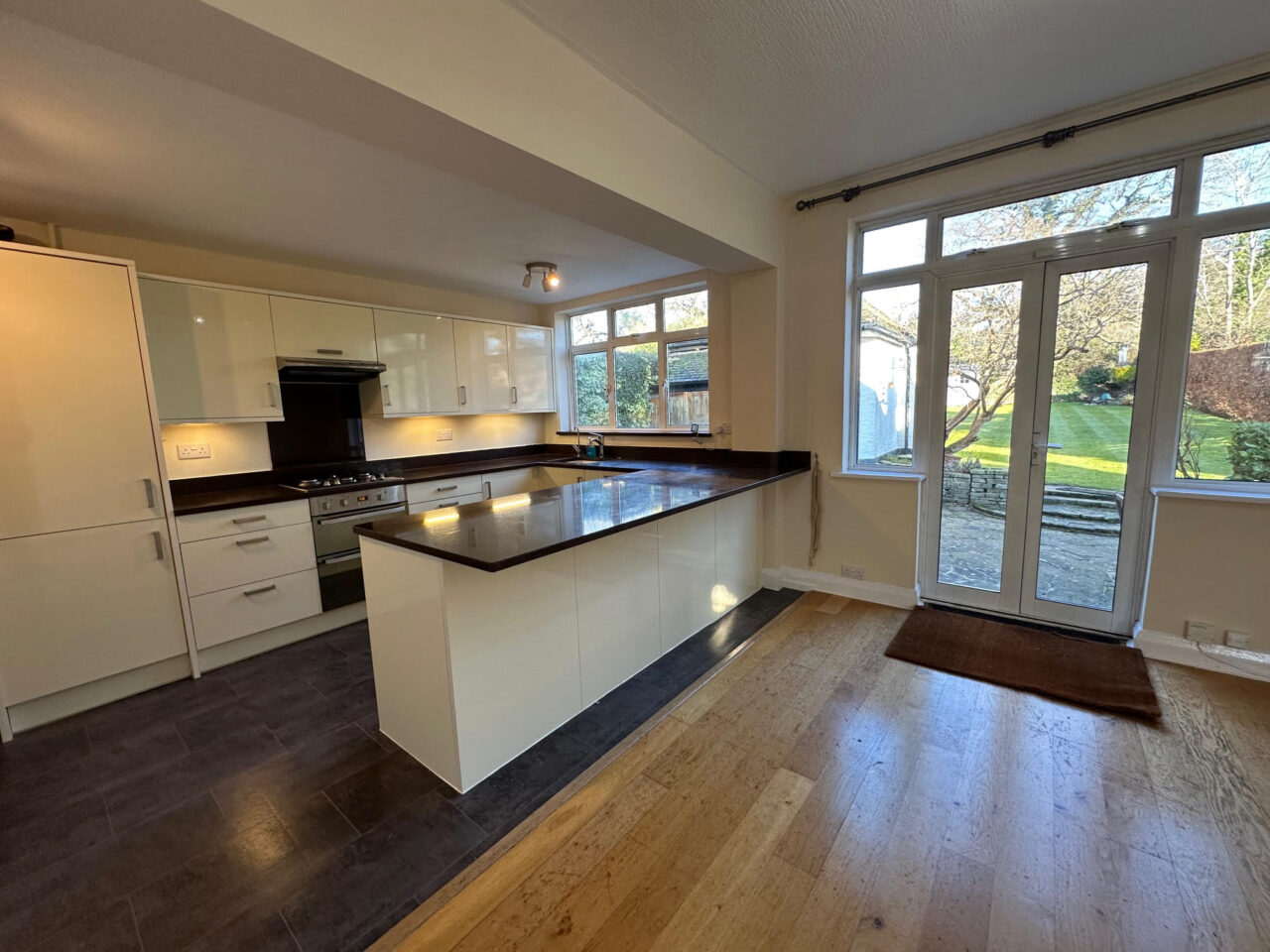 Open plan kitchen diner overlooking a beautiful, well kept large garden which is not overlooked. The bungalow also has a large driveway.