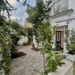 The 900-square-foot property has been newly renovated and is arranged over two floors, featuring high ceilings, plenty of natural light, and a vast garden.