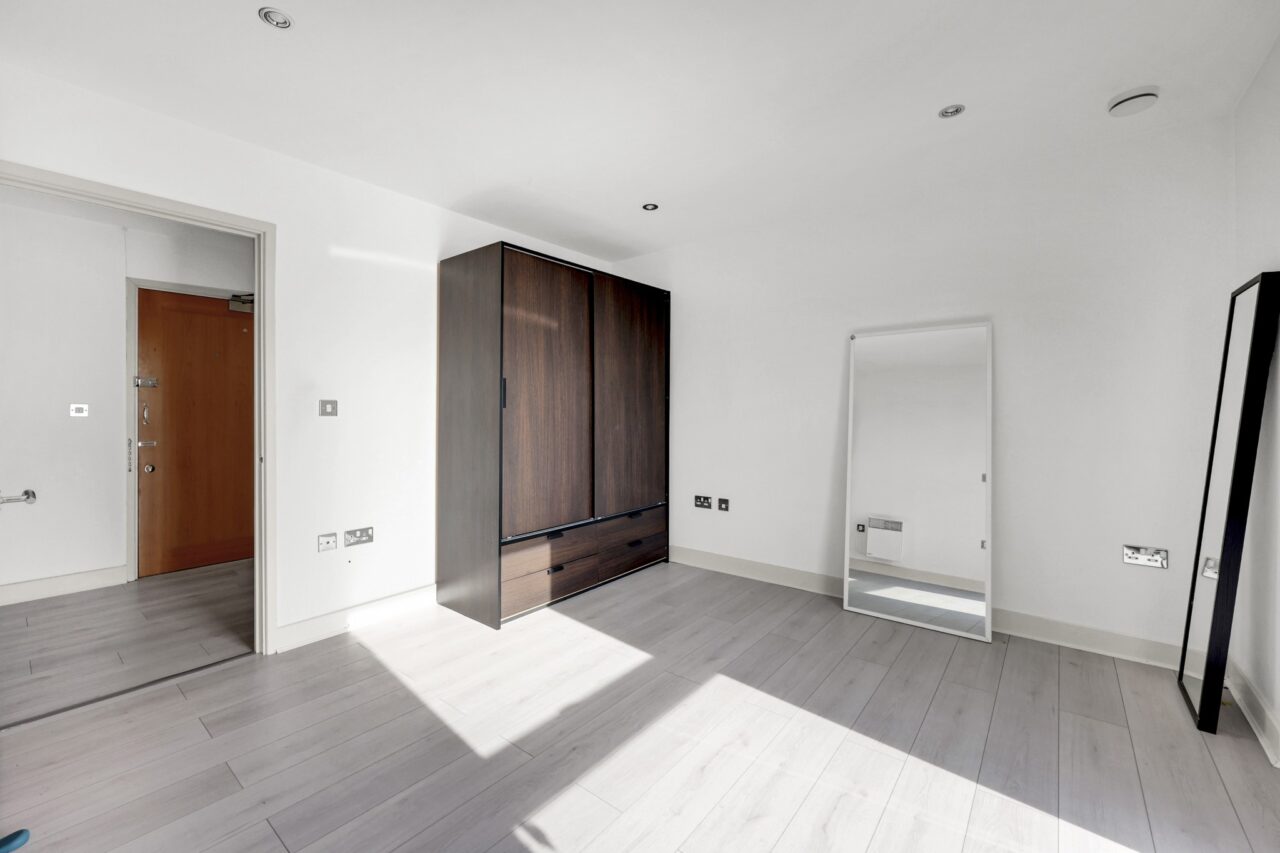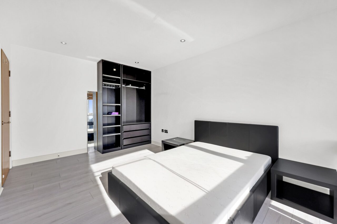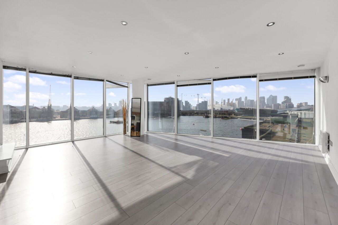 Positioned on an upper floor, the property benefits from an abundance of natural light throughout, enhancing the generous open plan living and dining area, ideal for both relaxing and entertaining. Floor to ceiling windows frame far-reaching views across the city skyline and the river, creating a striking backdrop day and night.