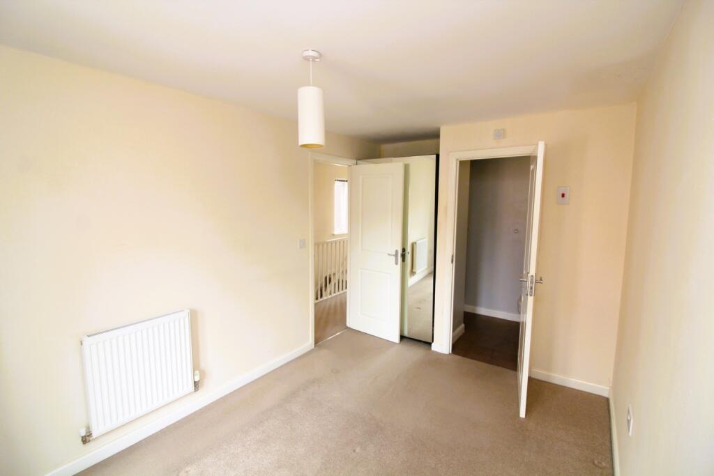 Bedroom #2 – smaller double bedroom, fully carpeted and curtained, radiator.