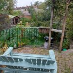 Garden has raised patio area steps down to garden approx 80′ long