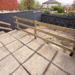 Modern Kitchen with modern spotlights in newly replastered ceiling with new Oven, Hob, Extractor and modern Oak Karndean Style flooring with access through Double French doors to large rear yard with patio area and great size for a BBQ area.