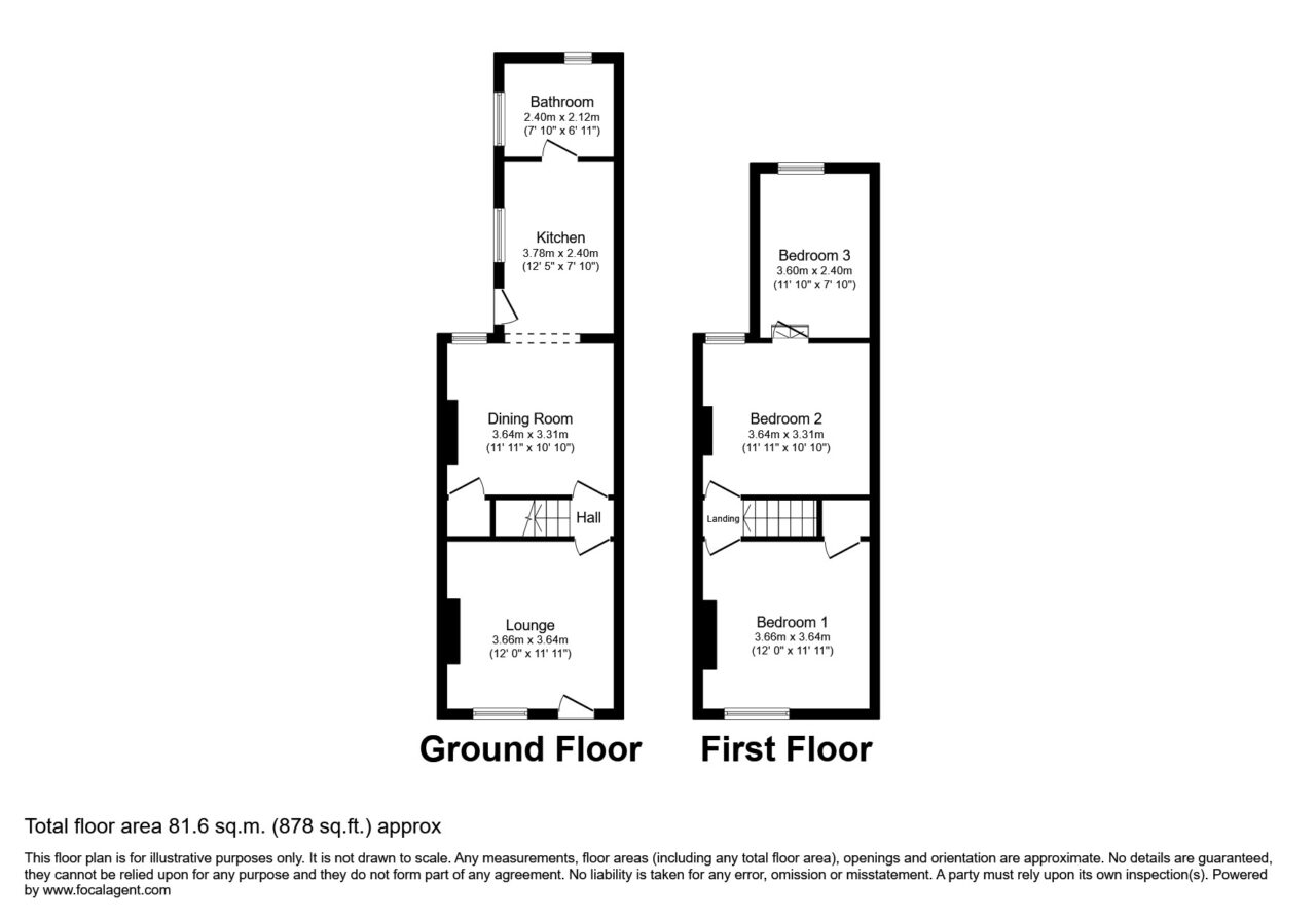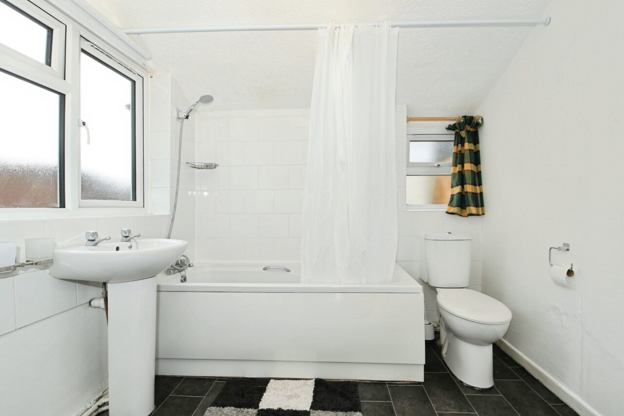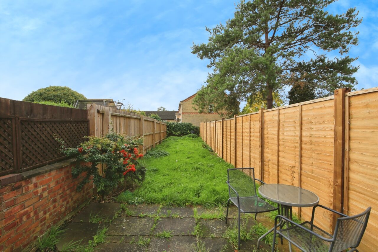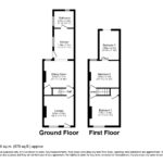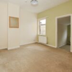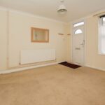 2 double bedrooms (one with built-in wardrobe) and 1 medium bedroom or study (12 x 12ft, 10.5 x 12ft, 11 x 8ft). Front yard recently paved, large back garden. Downstairs a large living or dining room in the front and another living room behind (12 x 12ft, 10.5 x 12ft). Under stair storage cupboard. Living room opens into the kitchen – modern, generous storage (12 x 8ft). Fridge-freezer, washing machine, dishwasher. Bathroom – bath and shower with modern fittings, recent new floor (7 x 8ft). To the rear of the property there is a good size private garden with great potential to personalise.