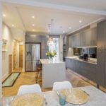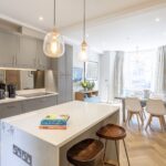 The property is an exceptionally bright and airy three-bedroom, two-bathroom split-level Victorian property. Located on Warriner Gardens and just steps from Battersea Park, this elegant home perfectly blends Victorian proportions and bay fronted character with an exceptional modern specification.