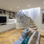 The property enjoys extensive bespoke built-in storage, underfloor heating throughout, integrated wiring for fibre broadband and Sky Q television.