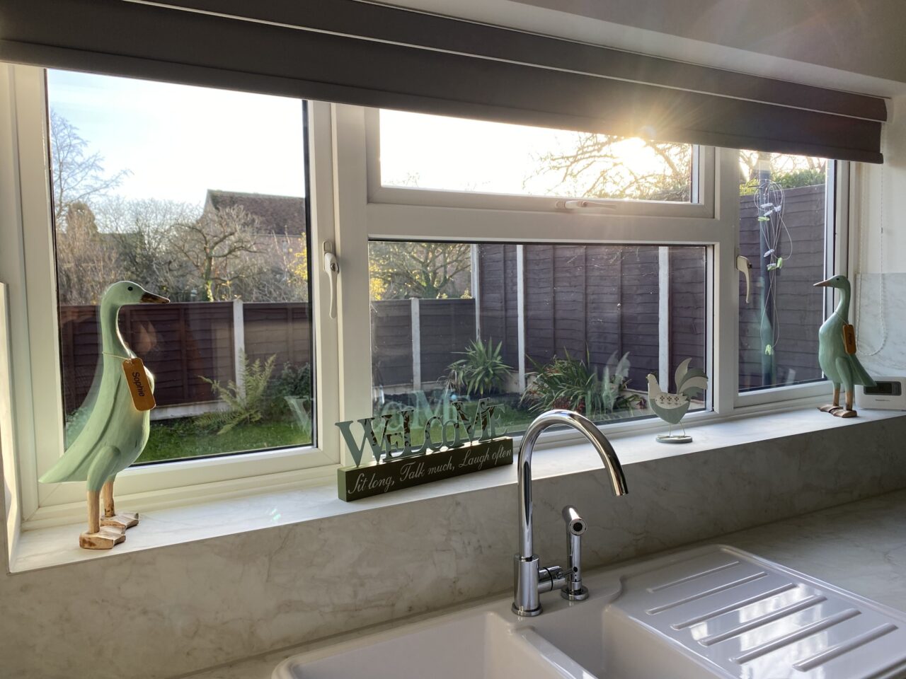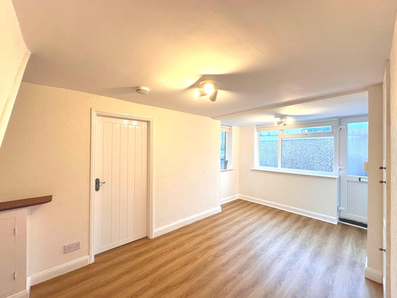 Half glazed entrance door into the dining room from the property’s private side garden. Open access to the kitchen. Large storage cupboard with shelves, an understairs cupboard and the electric meter cupboard.