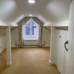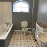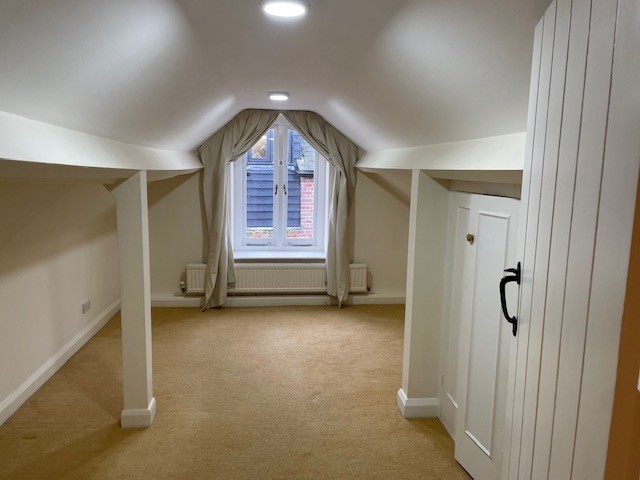 There is a big farmhouse style kitchen diner, witrh AGA, electric oven and hob, a fridge freezer and space for a dishwasher. Off the kitchen is a large utility room , with a washing machine and tumble dryer, and a cloakroom. A door from the kitchen diner leads out to a good sized enclosed private garden. The spacious living room has a woodburner and stairs lead to the two bedrooms and a bathroom upstairs. There is a second smaller reception room on the ground floor with a lovely feature arched window. There is a cloakroom off the hallway together with a large coat cupboard. Upstairs there are two double bedrooms in the eaves, both with fitted wardrobes. There are two bathrooms in the property, one upstairs and one downstairs, both with showers over the bath.