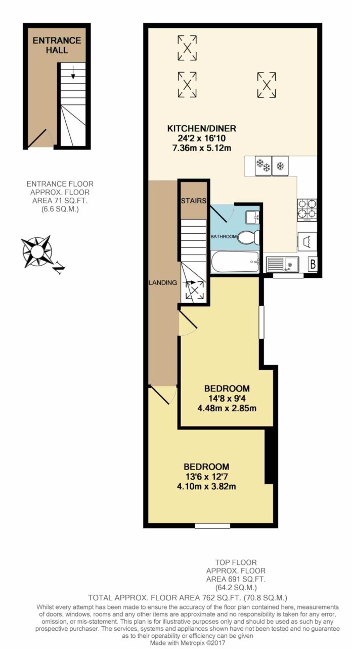 Stairs to top floor opening up to the landing. Both bedrooms to the rear of the property. Reception diner and kitchen to front. Bathroom off the reception room. Benefits from gas central heating and double glazing. Shared garden to the rear of the property which is a sun trap.