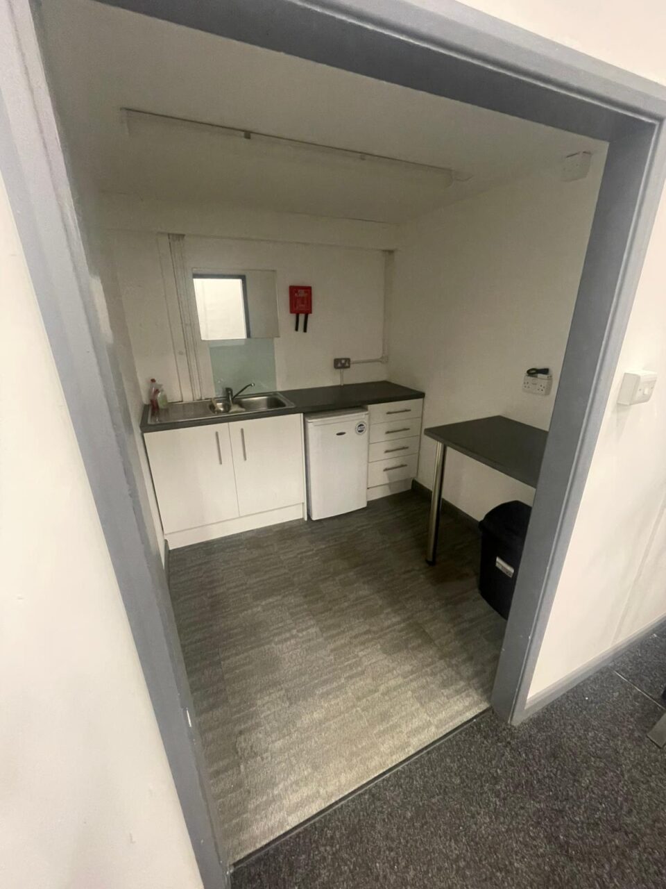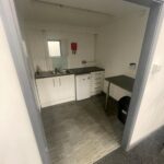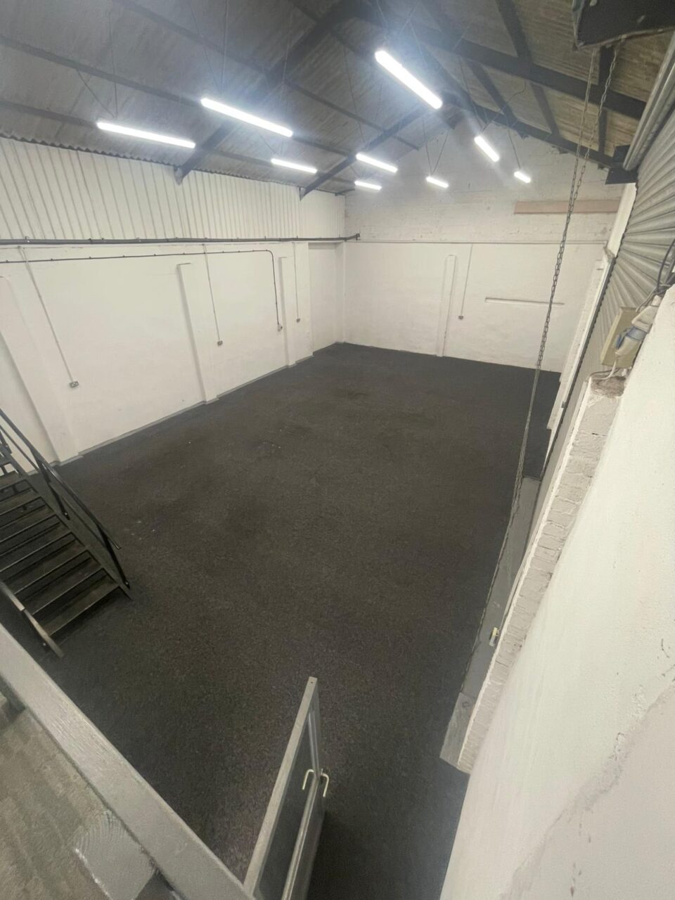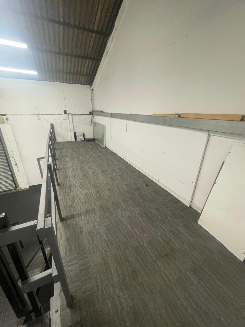 The unit has a open work space, small kitchenette and office and mezzanine floor.
