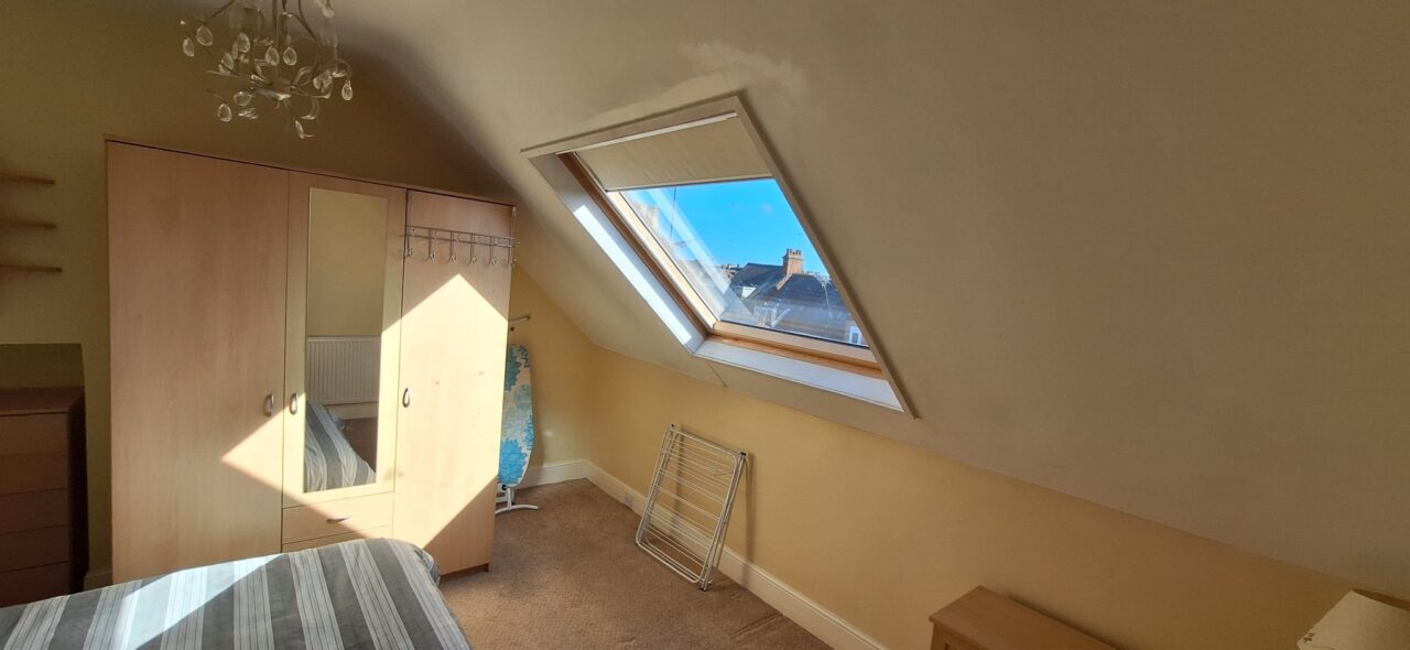 Bright Living Space: The flat features Velux windows that flood the rooms with natural light, creating an airy and welcoming atmosphere.