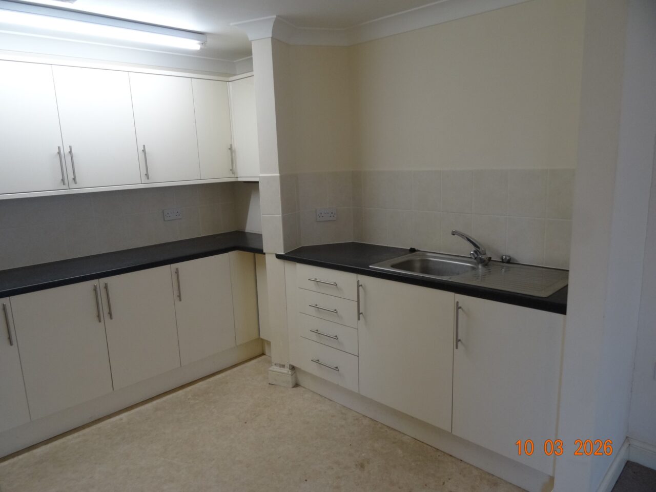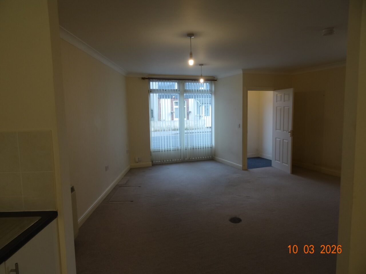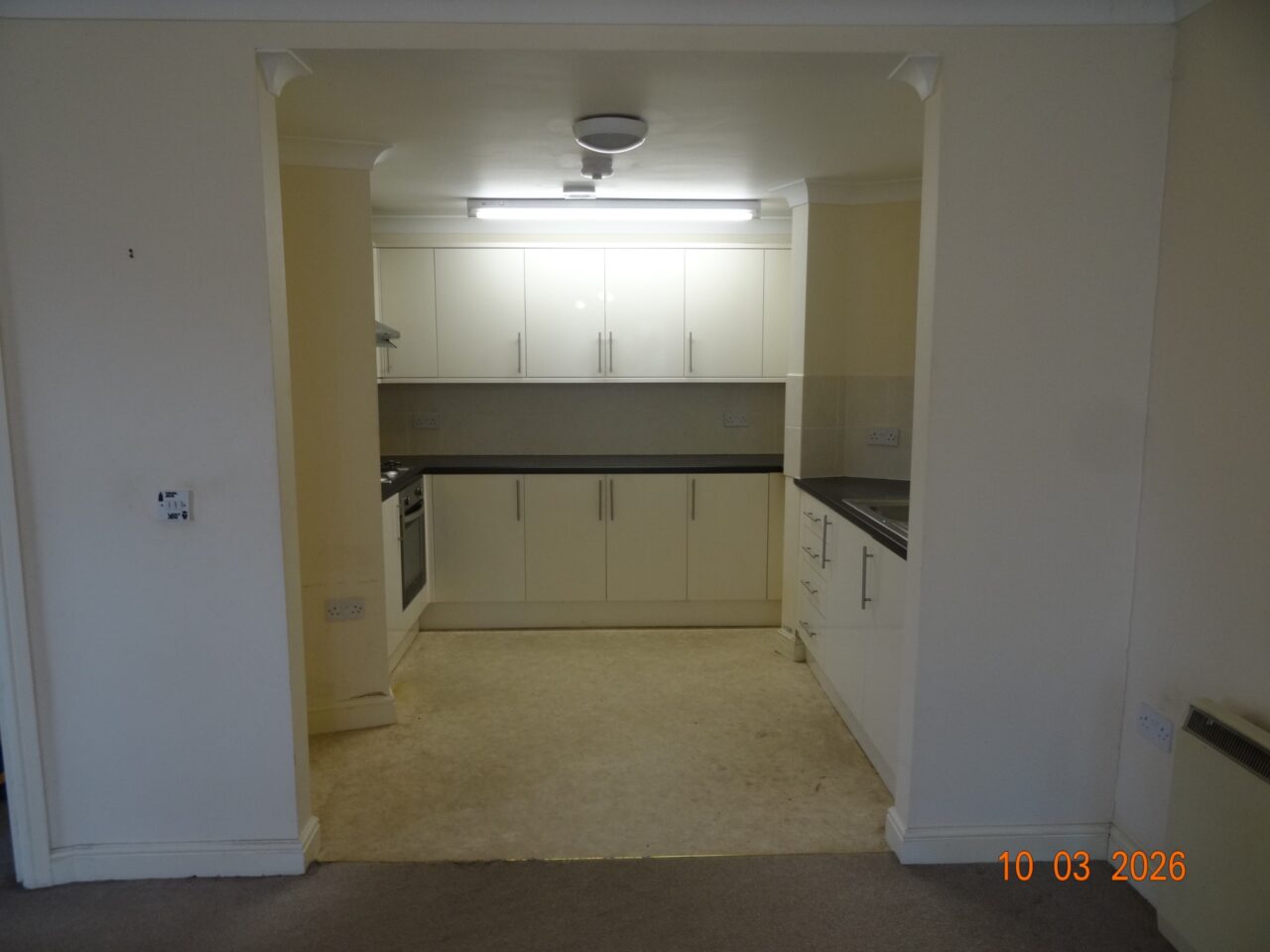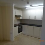 The flat is laid out in open plan style with the kitchen open plan with the living area and separated by an archway.