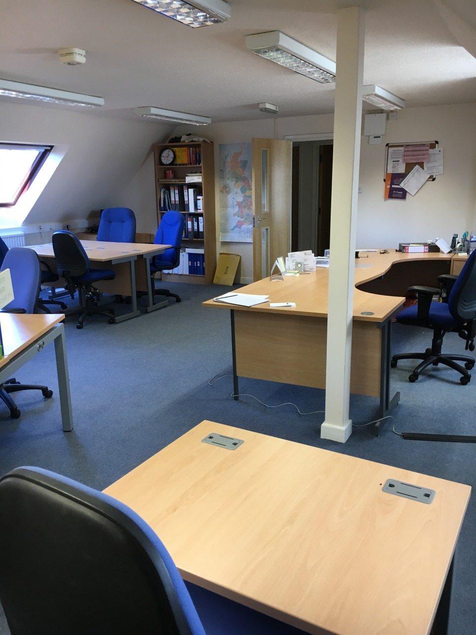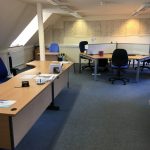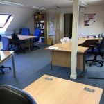 Completely self contained, modern, first floor office accommodation with two parking spaces. Main open plan office area plus private office / meeting room. 2 x WCs, kitchenette and completely independent entrance.